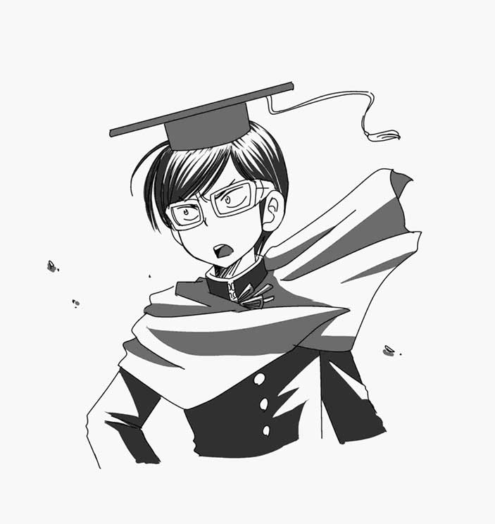 学ランちょい開け真理谷さん。よく見たらあぐらかいてるじゃないですか。