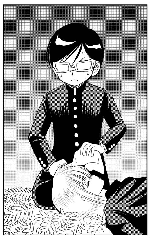 ミイナの様子を見る真理谷のコマ。